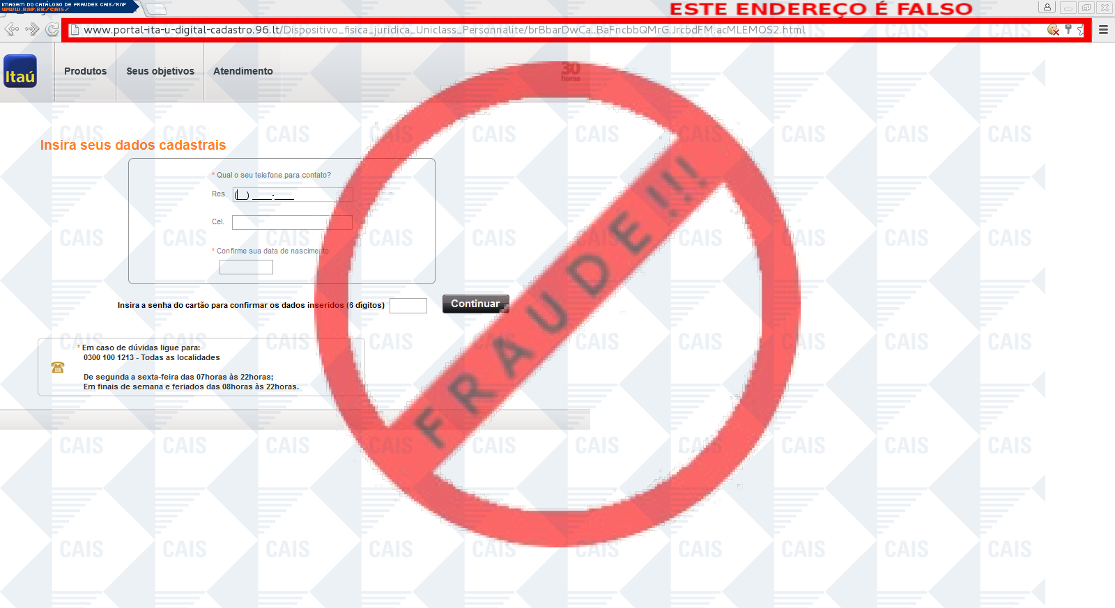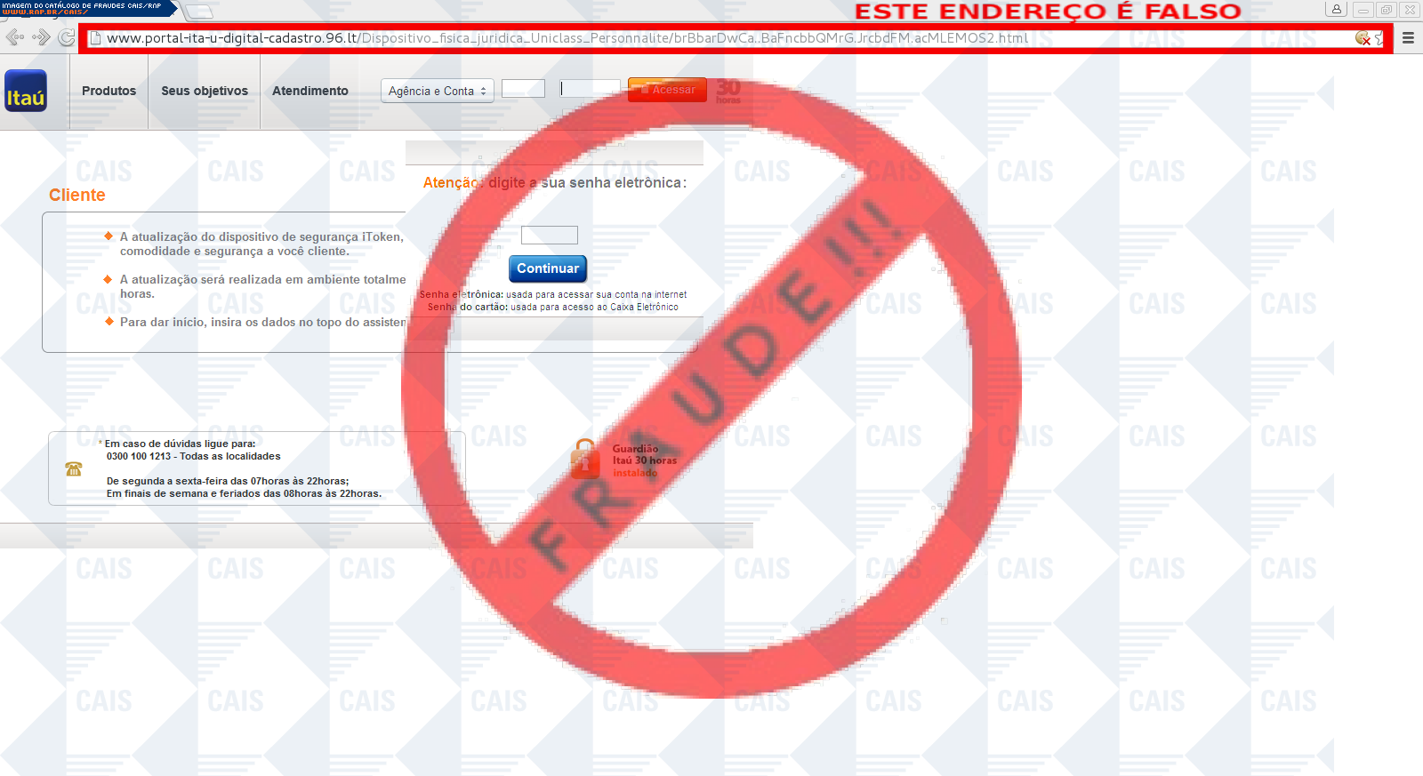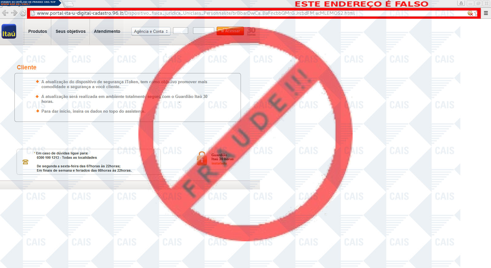 | tipo | FRAUDE - Itaú Dispositivo de Segurança | ID: 47901 |
