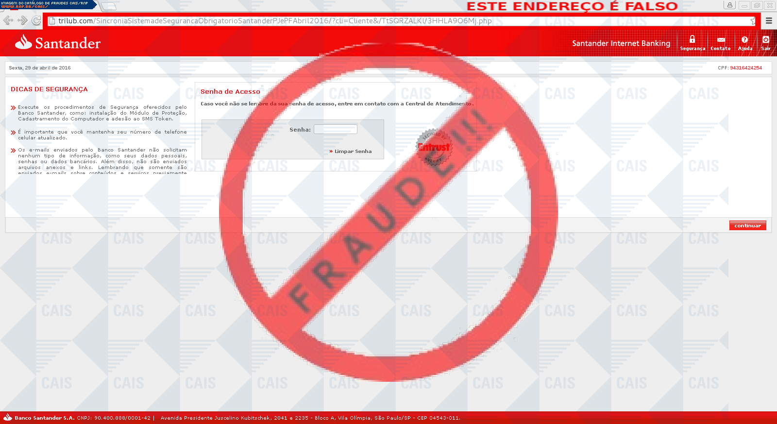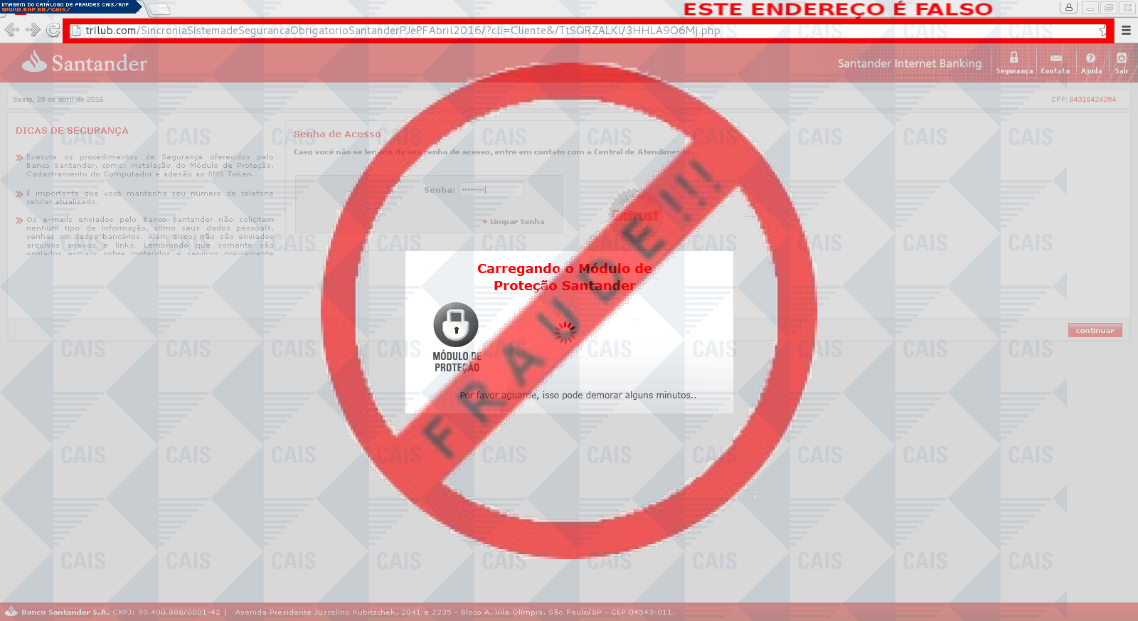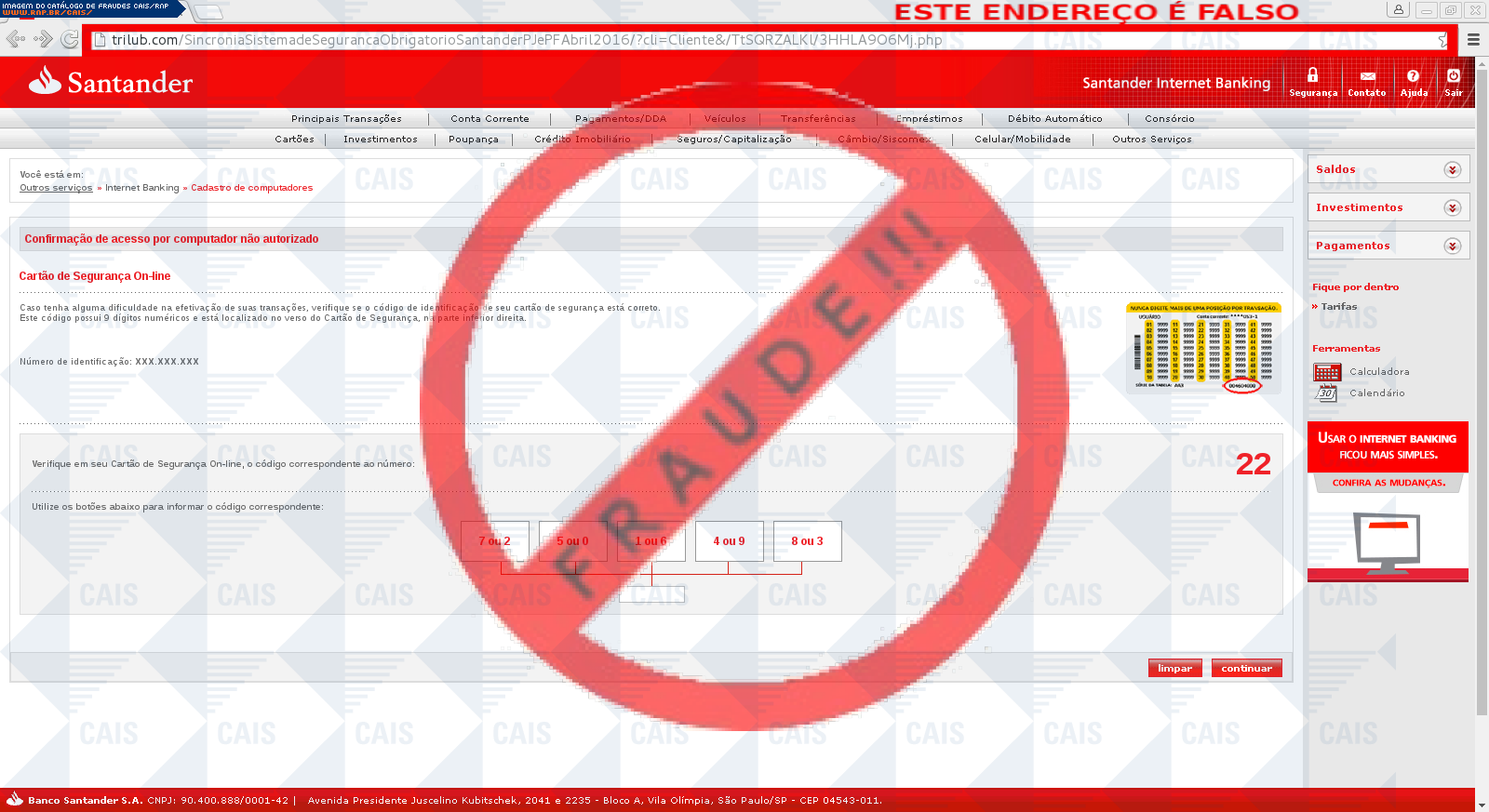 | tipo | FRAUDE - Santander Modulo de Segurança | ID: 47946 |
