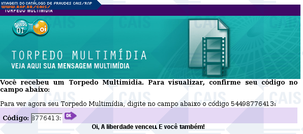 | tipo | Fraude Oi Torpedo Multimídia | ID: 1411 |