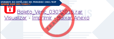 Esta página tem função informativa e educativa. Exibe uma coleção de imagens de phishing scam (fraudes eletrônicas) ou malware (código malicioso) veiculados por meio de spam (e-mail não-solicitado). Trata-se de conteúdo exemplificativo, não exaustivo, uma vez que não é possível contemplar todos os casos de fraudes existentes. Assim, caso você tenha conhecimento de um exemplar que não esteja aqui presente, isto não significa que não seja válido ou real. Inclusive incentivamos que você o envie para análise do CAIS para que, se for o caso, passe a integrar o nosso acervo.