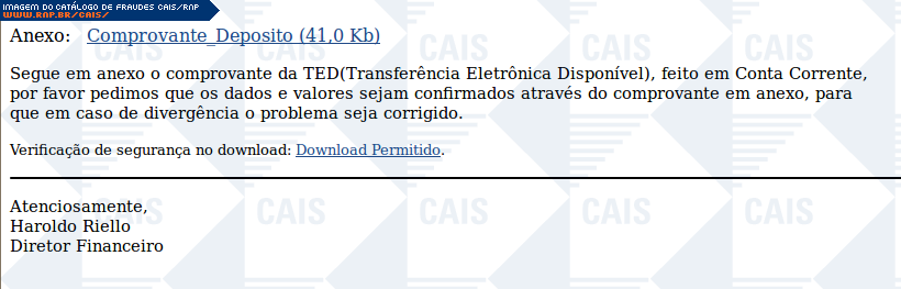 | comentário | A fraude contém em anexo o malware Win32.Netsky.B@mm (BitDefender). | |