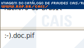 | arquivo malicioso | :-).doc.pif | |