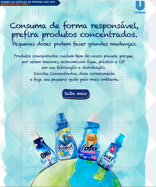 | comentário | A mensagem se passa por uma propaganda da Omo que ressalta que a empresa se preocupa com o meio ambiente. A mensagem contém um link que leva a um software malicioso que foi identificado como Gen:Trojan.Heur.GZ.GGW@bCavhKoG (BitDefender). | |