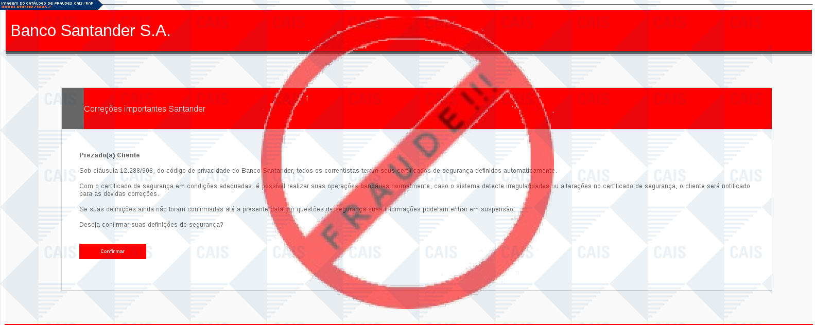 | tipo | FRAUDE - Santander Certificado de Segurança | ID: 47626 |