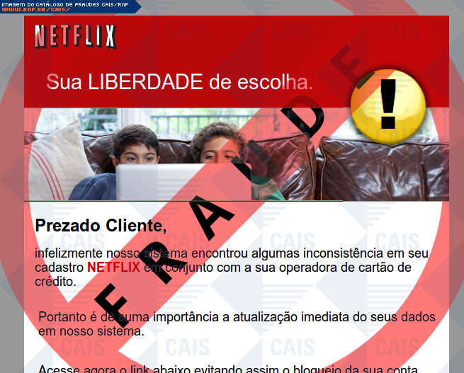 | assunto | Infelizmente Nosso Sistema Encontrou Algumas Inconsistência Em Seu Cadastro NETFLIX | |
