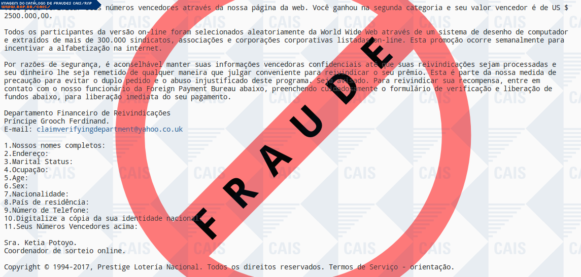 | assunto | O seu endereço de E-MAIL, com sucesso, ganhou EUA $ 2.500.000,00. | |