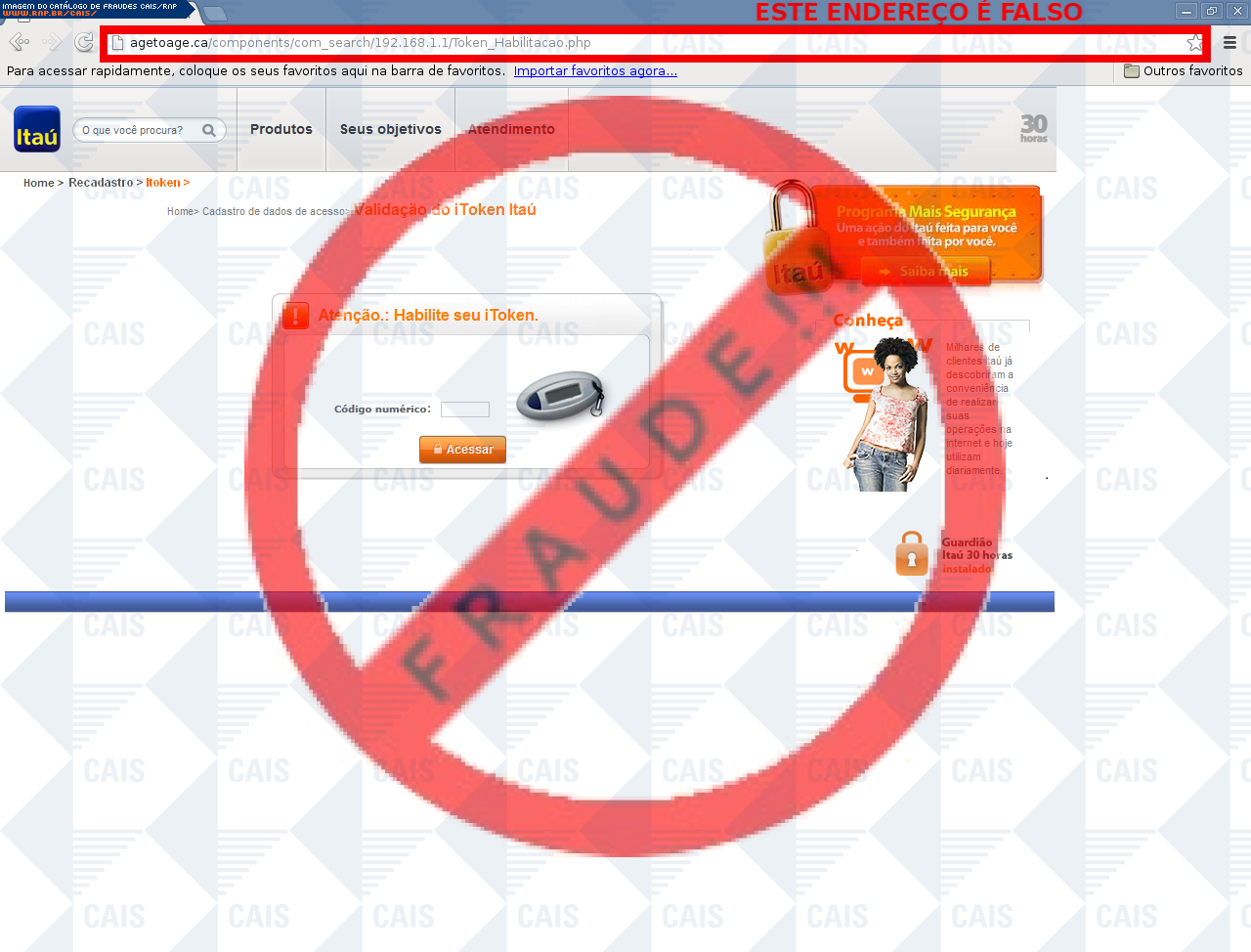 | comentário | A vítima recebe uma mensagem, contendo um link para acessar a página do banco, mas ao clicar no link, a vítima é direcionada para uma página falsa, bem semelhante a original. | |