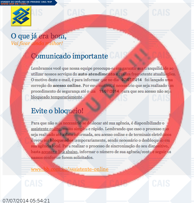 | tipo | FRAUDE - Banco do Brasil | ID: 31191 |