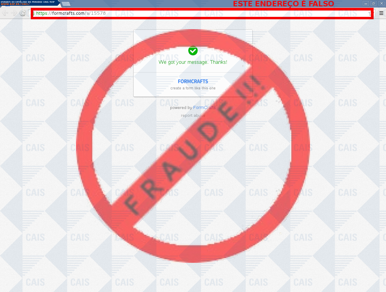 |   |  Fraudes identificadas e divulgadas pelo CAISA partir de 2008, todas as fraudes identificadas pelo CAIS estão sendo ordenadas de acordo com a data de distribuição e disponibilizadas para consulta, com o intuito de conscientizar a comunidade sobre os principais golpes que estão em circulação. Adicionalmente, o CAIS envia alertas de segurança através da lista CAIS Alerta quando uma fraude mostra-se particularmente perigosa aos usuários de computadores. Reporte fraudes: