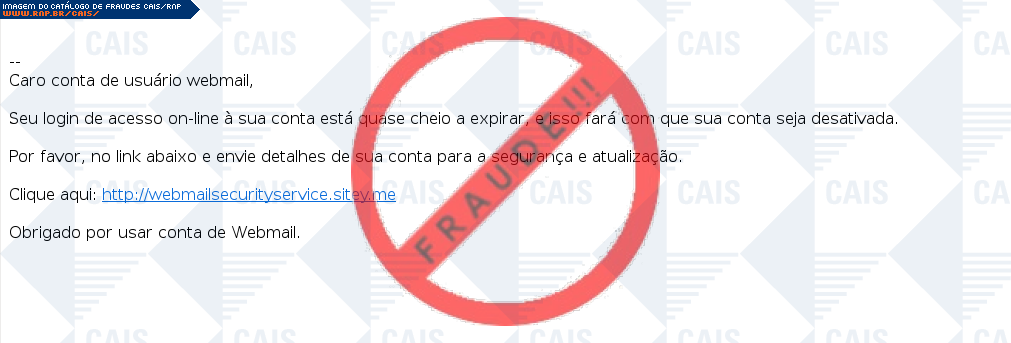 | tipo | FRAUDE - Webmail atualização de dados | ID: 44891 |