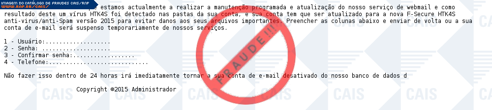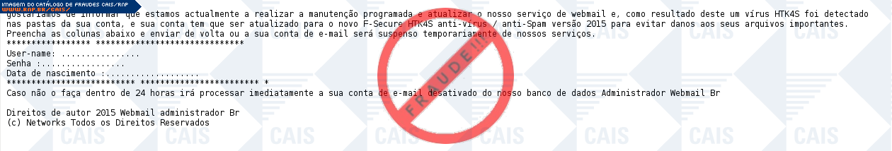 | tipo | FRAUDE - Webmail atualização antivírus | ID: 44646 |
