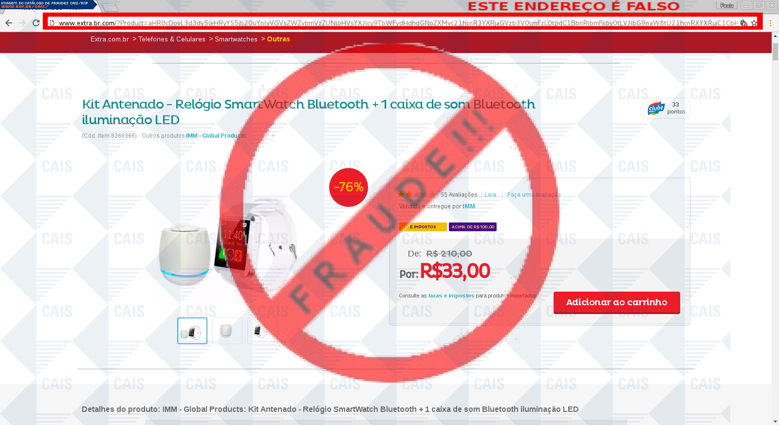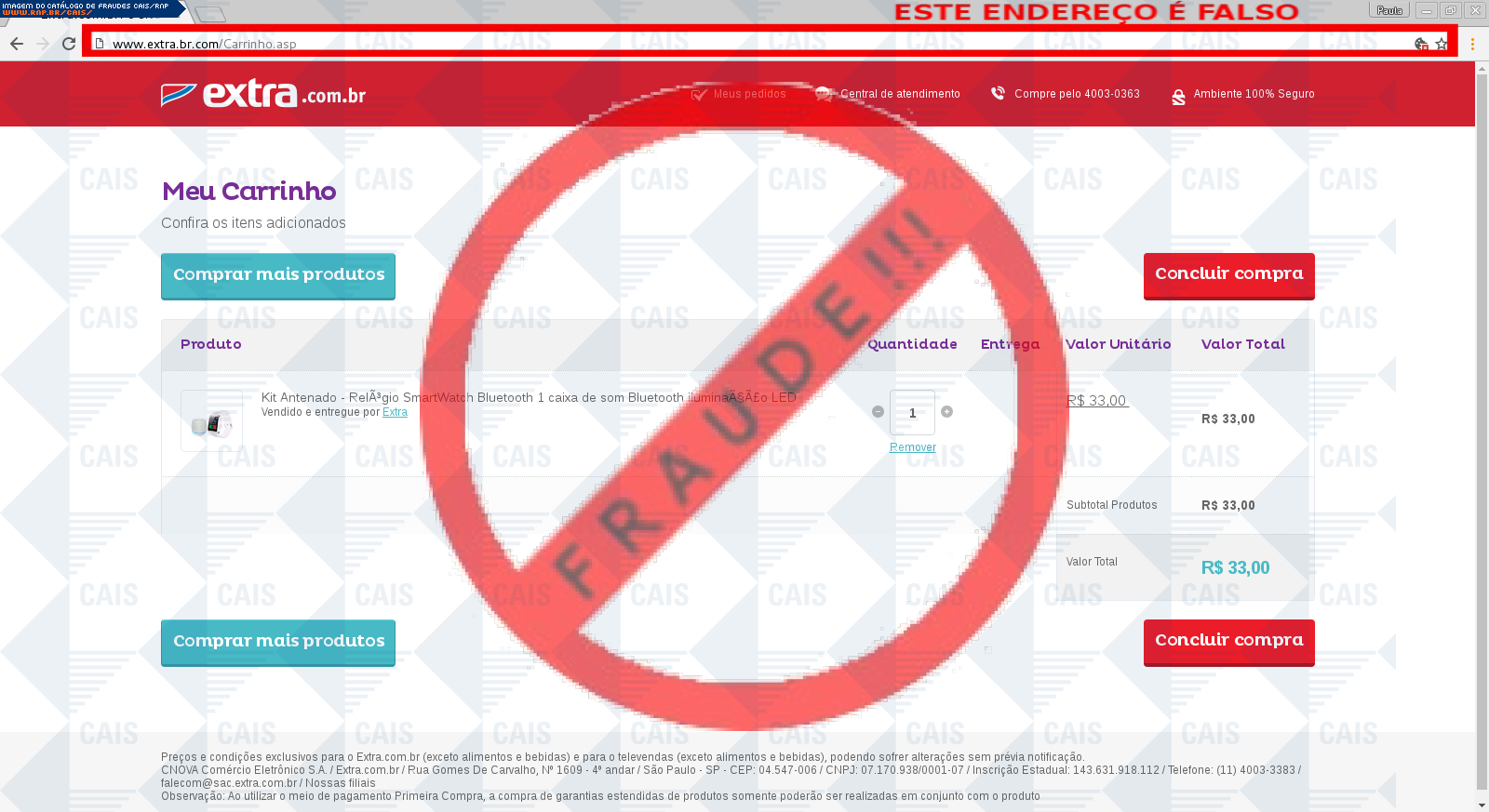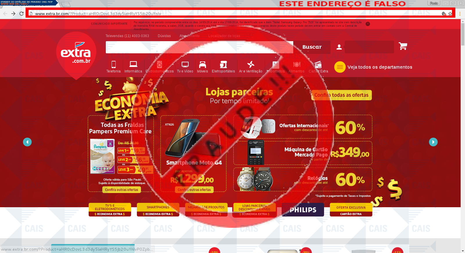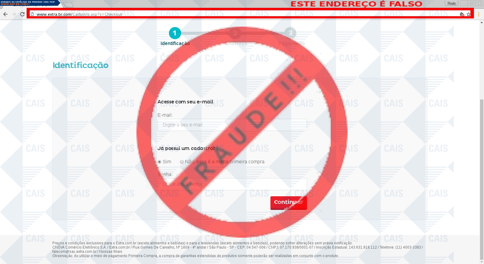 | comentário | A vítima recebe um e-mail informando sobre promoções no site de compra do Extra disponibilizando link de vários produtos em desconto, no entanto a página é falsa destinada a gerar boletos falsos e roubar dinheiro do usuário. | |