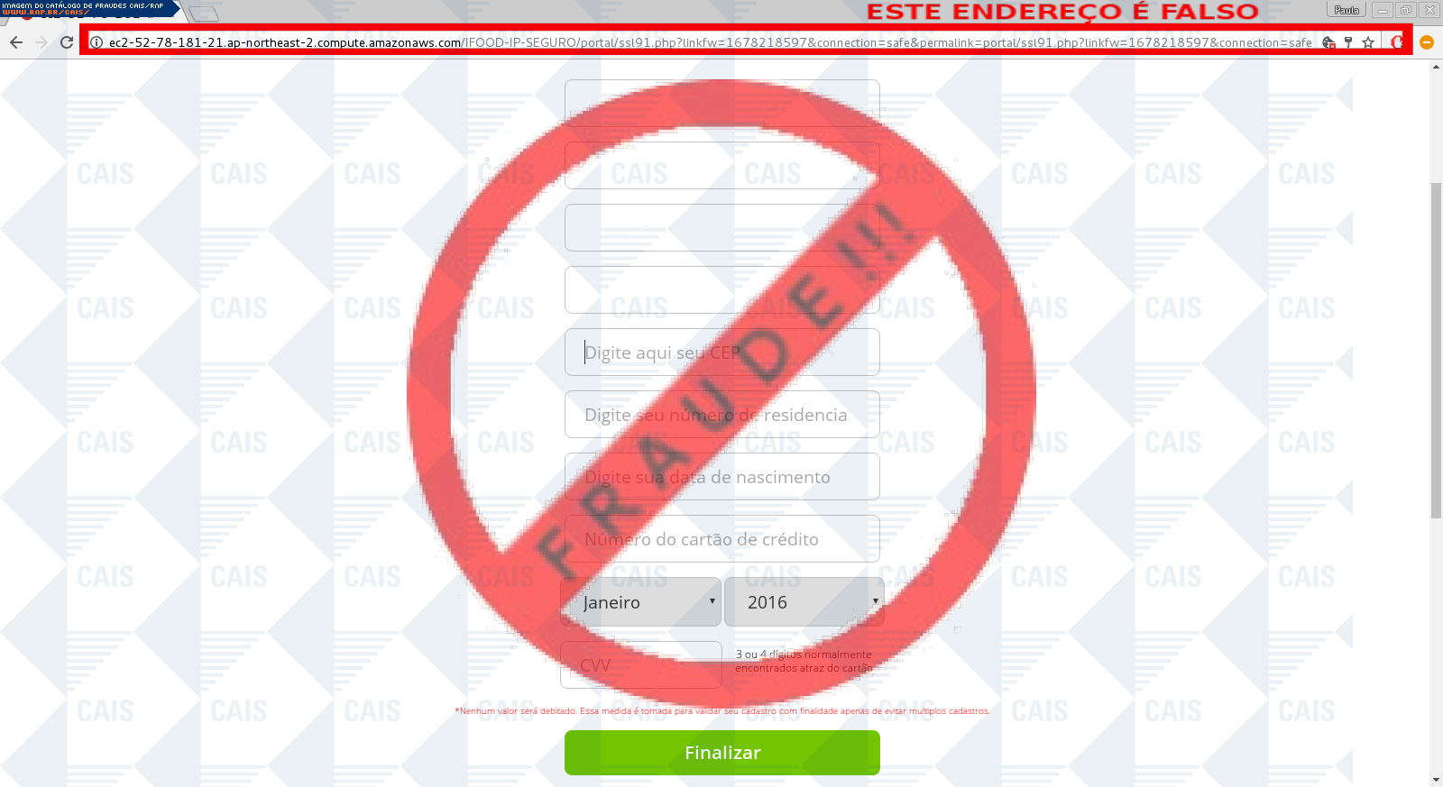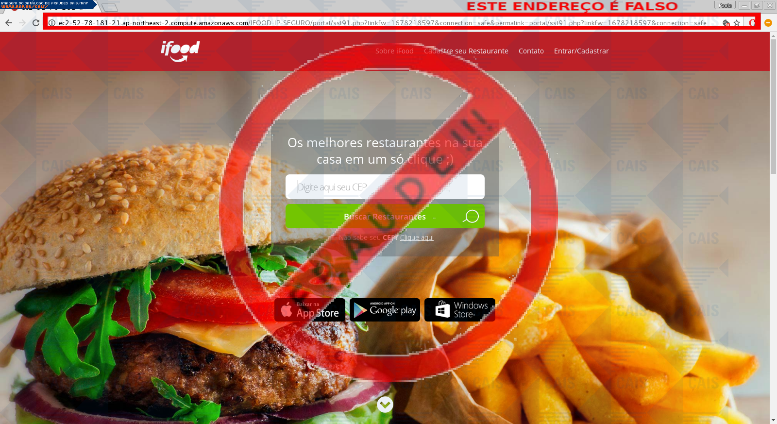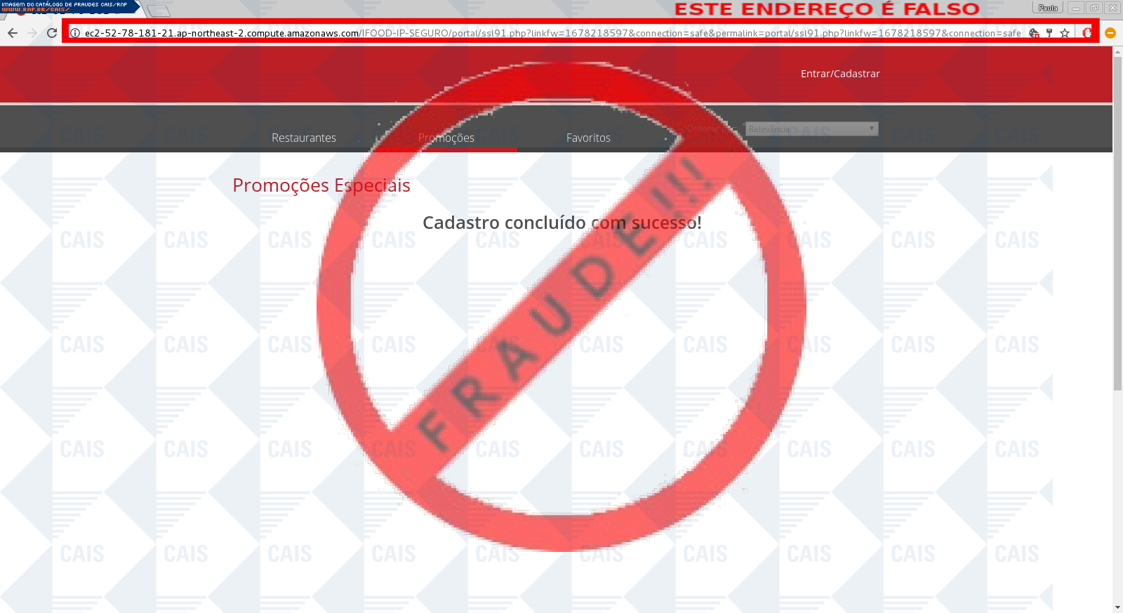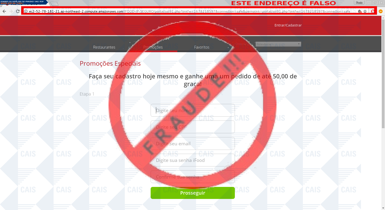 | comentário | Uma suposta página de um serviço de delivery, com nome de IFood, solicita cadastro para participação em promoções, no entanto a página é falsa destinada a roubar as informações do usuário. | |