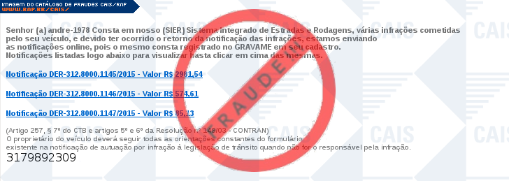 | tipo | FRAUDE - Notificação extrato de multas | ID: 45211 |