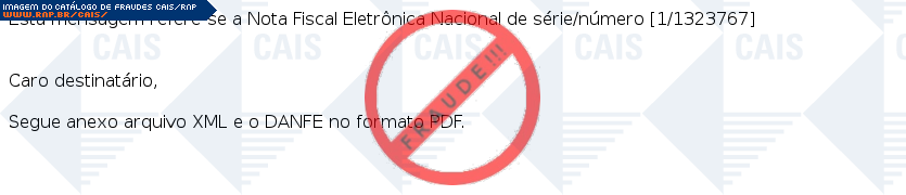 | comentário | A vítima recebe um e-mail contendo uma nota fiscal eletrônica disponível para download, no entanto o arquivo originado é malicioso destinado a roubar informações do usuário com o nome de a variant of MSIL/TrojanDownloader.Banload.FP. | |
