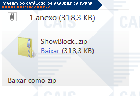 Esta página tem função informativa e educativa. Exibe uma coleção de imagens de phishing scam (fraudes eletrônicas) ou malware (código malicioso) veiculados por meio de spam (e-mail não-solicitado). Trata-se de conteúdo exemplificativo, não exaustivo, uma vez que não é possível contemplar todos os casos de fraudes existentes. Assim, caso você tenha conhecimento de um exemplar que não esteja aqui presente, isto não significa que não seja válido ou real. Inclusive incentivamos que você o envie para análise do CAIS para que, se for o caso, passe a integrar o nosso acervo.