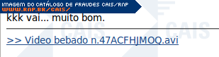 | comentário | A fraude contém um link para um suposto vídeo de humor. O conteúdo malicioso não estava disponível no momento da análise. | |