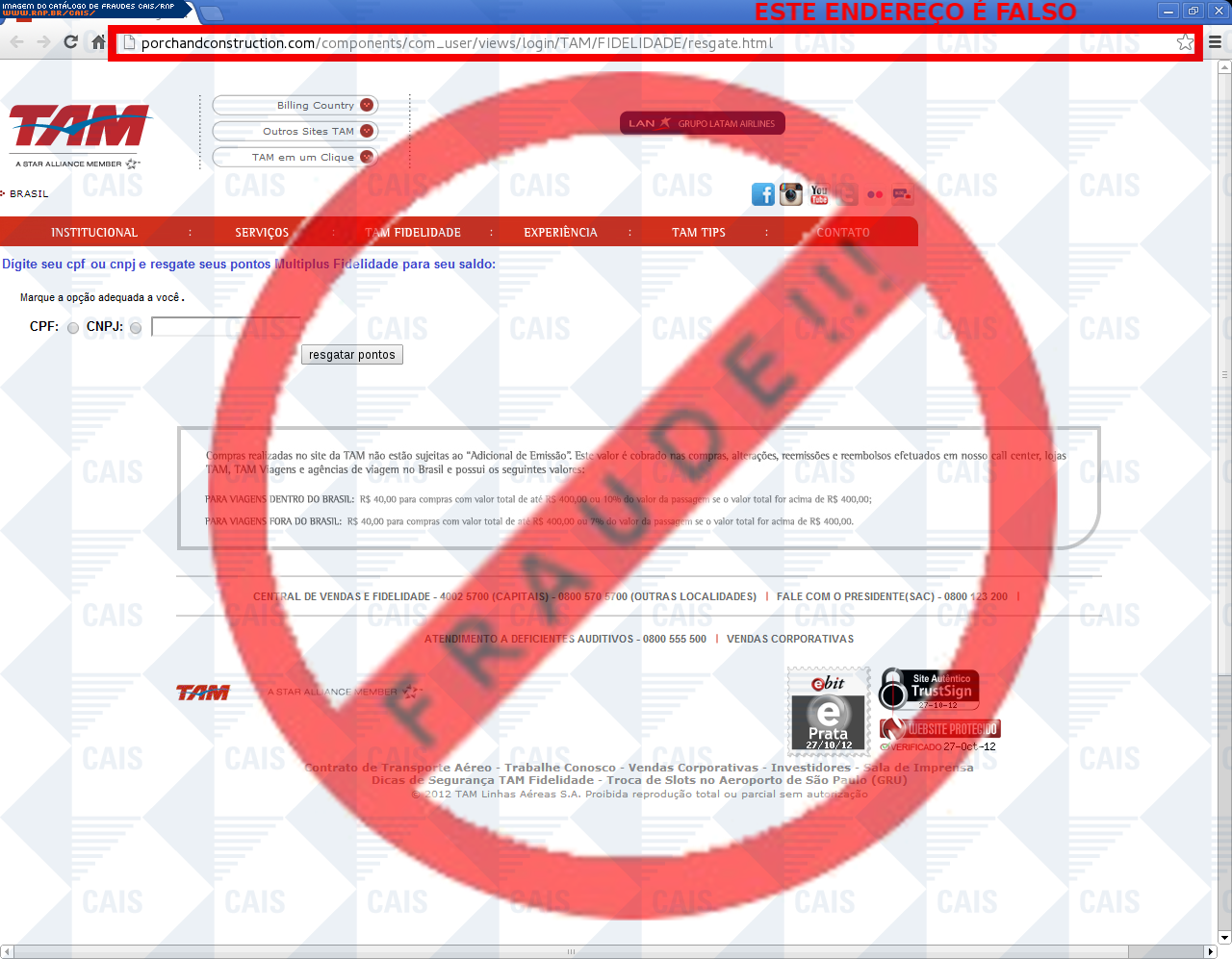 | comentário | O fraudador encaminha uma mensagem para o usuário contendo uma solicitação de resgate de pontos num plano de milhagens aéreas. Mas quando o mesmo acessa o link é levado a uma pagina falsa usada na pratica de phishing. | |
