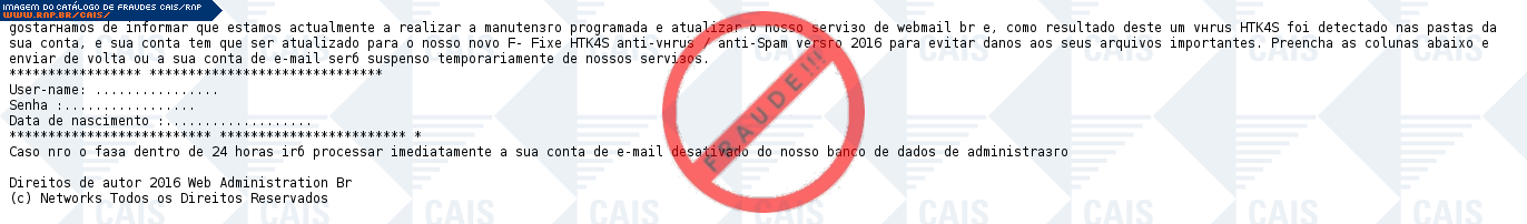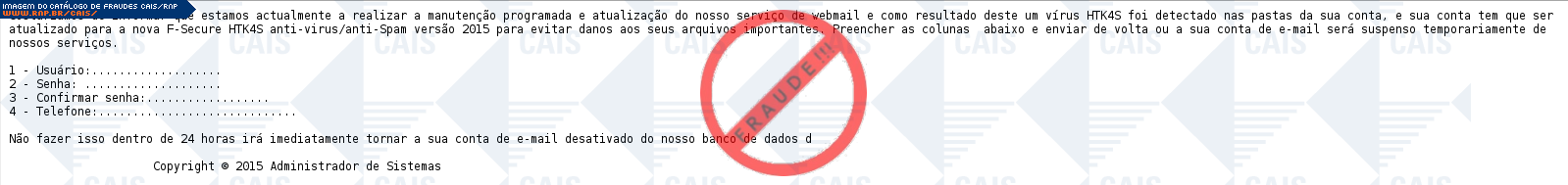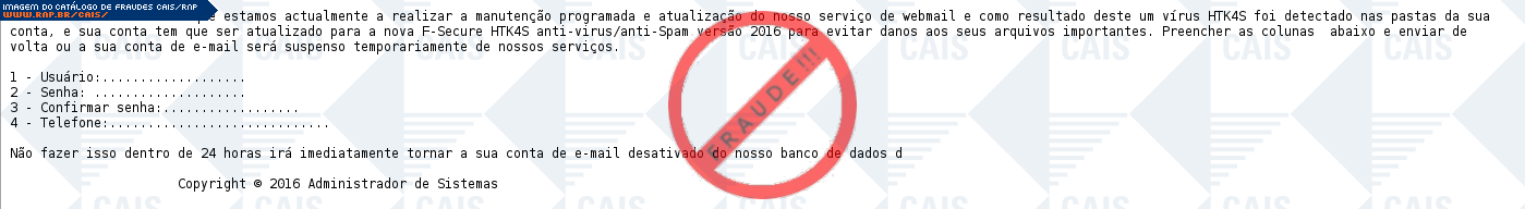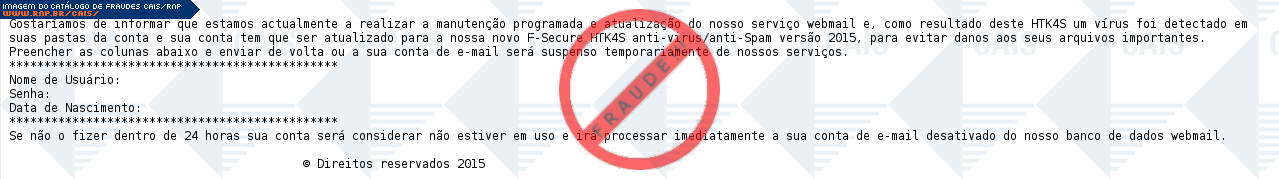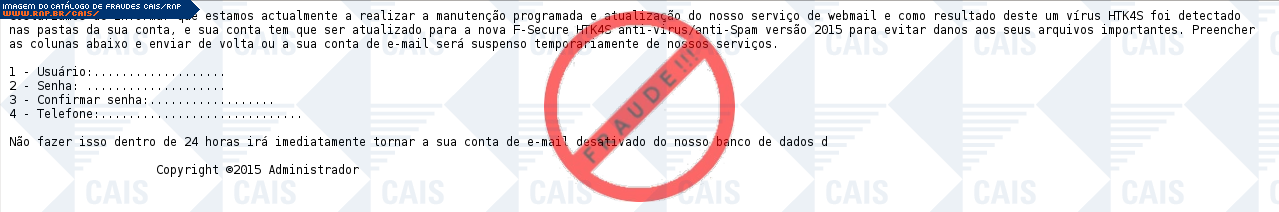 | tipo | FRAUDE - Webmail atualização antivírus | ID: 45176 |