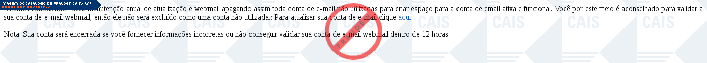 | tipo | FRAUDE - Webmail Manutenção e Atualização | ID: 46176 |