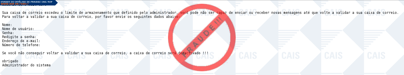 | tipo | FRAUDE - Webmail limite de armazenamento | ID: 46201 |