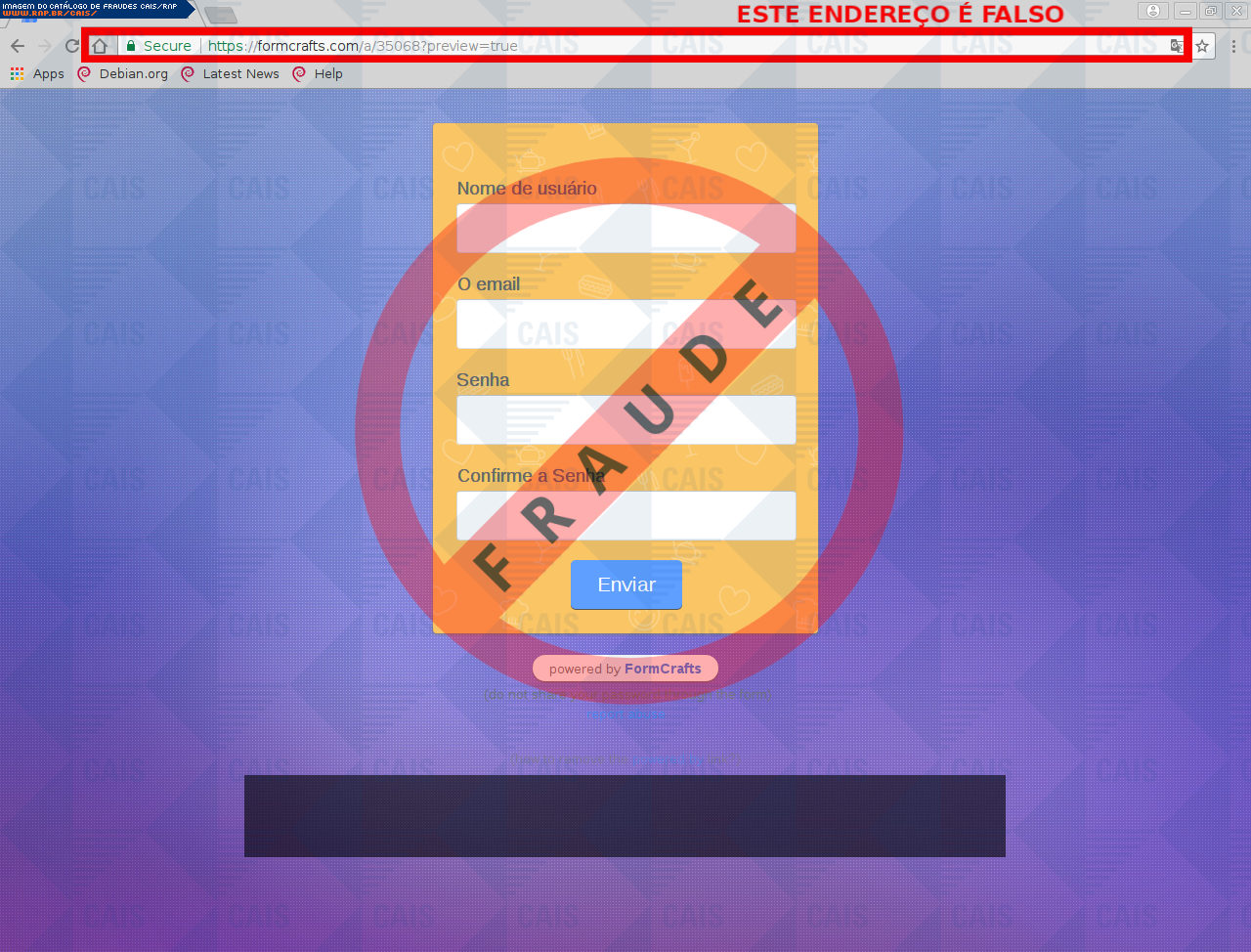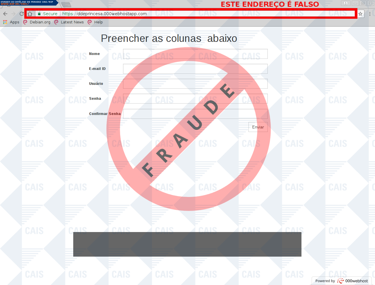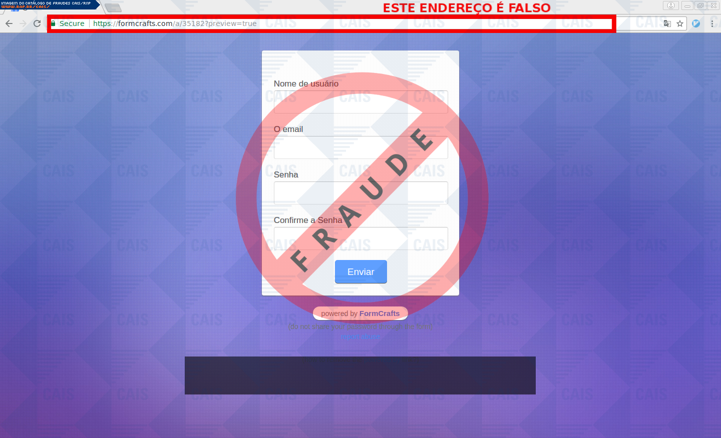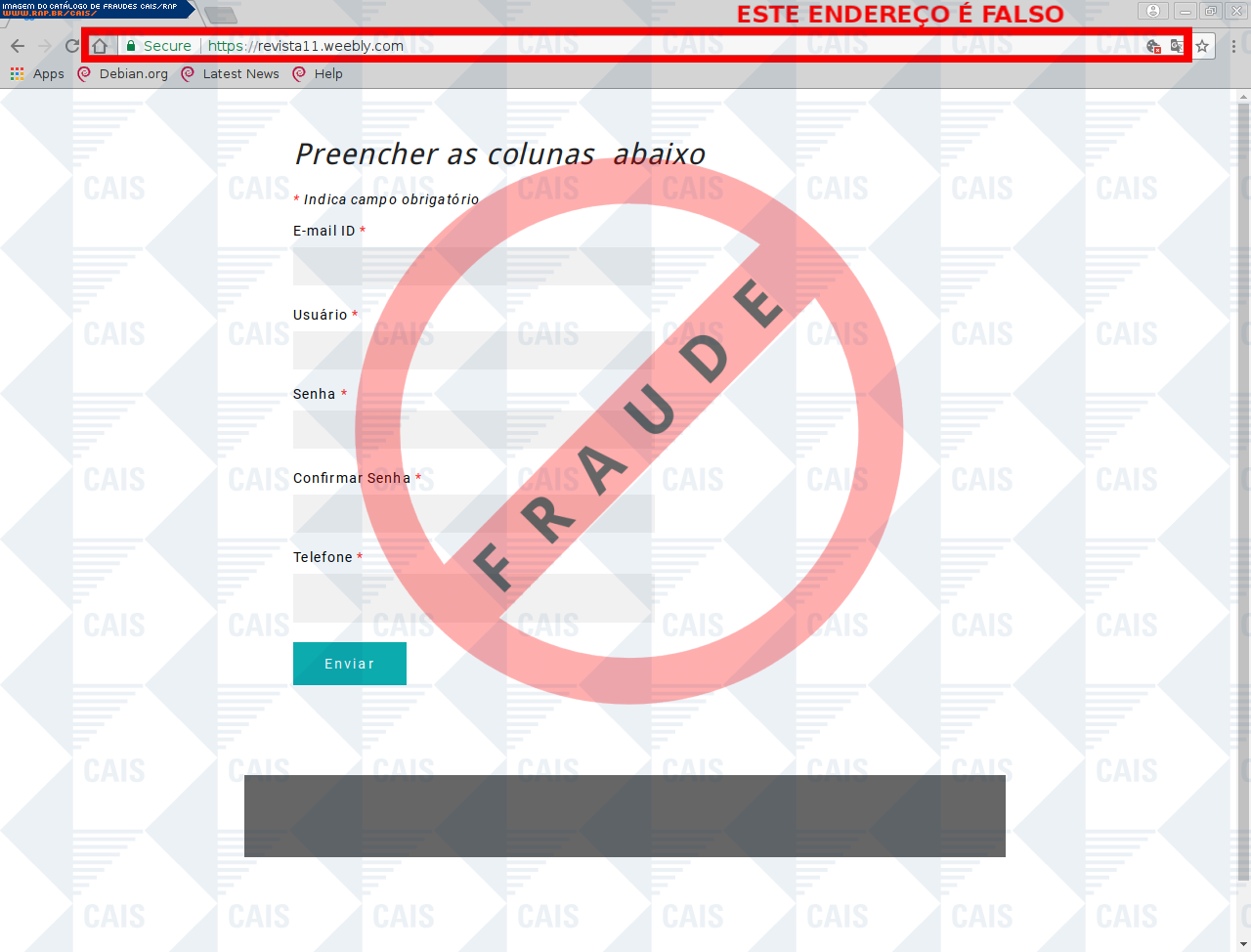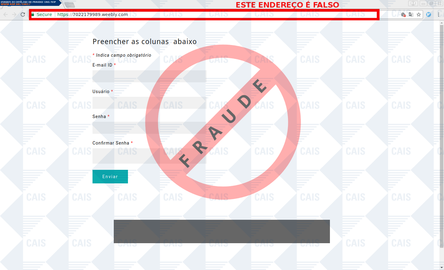 Com a disponibilização pública deste serviço, não é intenção do Centro de Atendimento a Incidentes de Segurança (CAIS) da Rede Nacional de Ensino e Pesquisa (RNP) violar direitos autorais sobre marcas registradas ou logotipos de empresas que porventura constem das amostras. O objetivo é tão somente alertar os usuários sobre as espécies de golpes que se utilizam de tais propriedades intelectuais ou industriais de forma criminosa.
