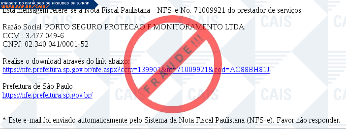 | arquivo malicioso | NF-Eletronica No. 71009921 - PORTO SEGURO.COM.BR.exe | |