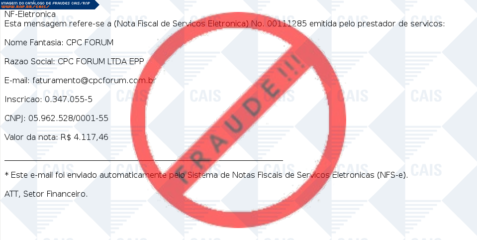 | tipo | FRAUDE - Nota Fiscal Eletrônica | ID: 41426 |