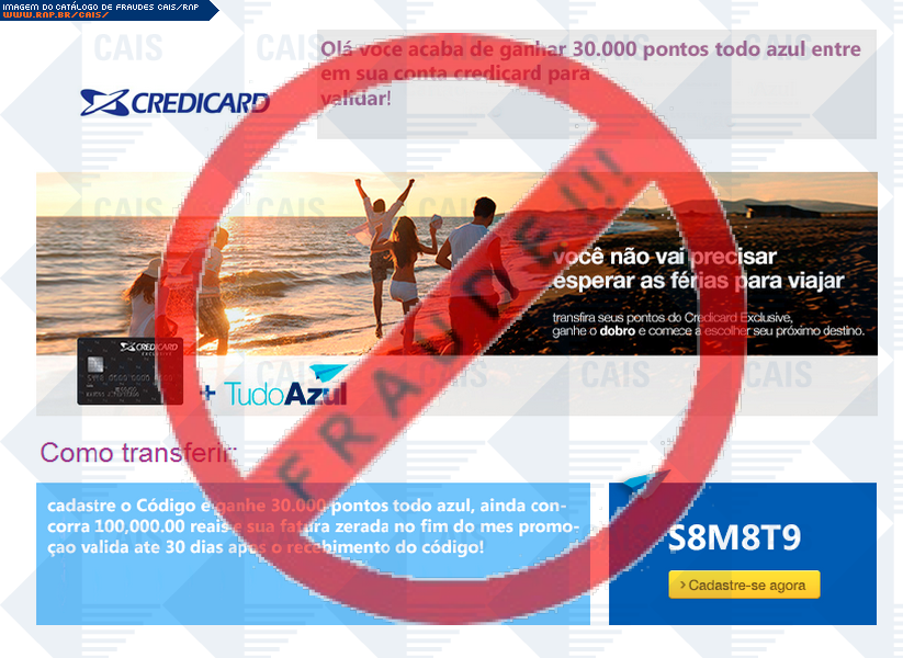 | assunto | Ola voce acaba de ganhar 30.000 pontos tudo azul entre em sua conta credicard para validar | |