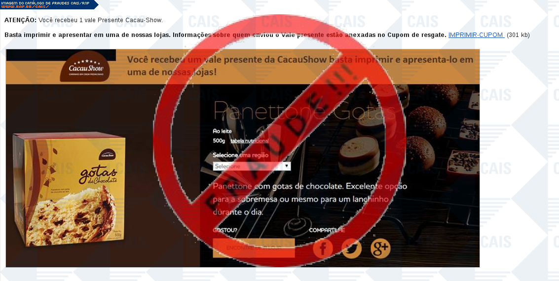 | tipo | FRAUDE - Cacau Show vale presente | ID: 37181 |