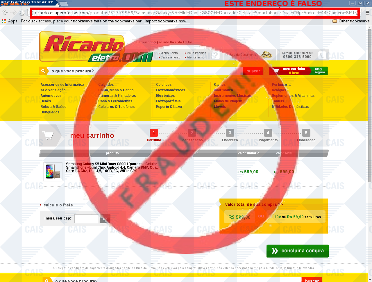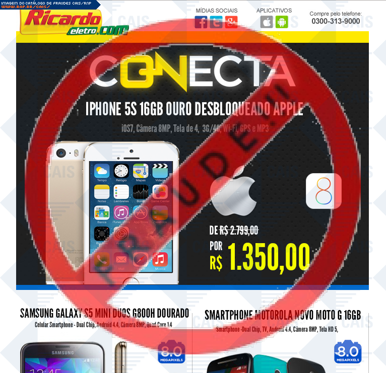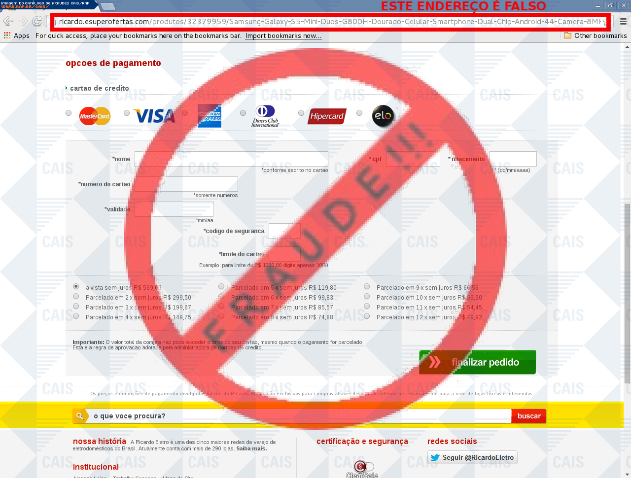 | comentário | A vítima recebe um e-mail informando sobre promoções no site de compra da Ricardo Eletro disponibilizando link de vários produtos em desconto, no entanto a página é falsa destinada a roubar as informações pessoais e do cartão do usuário. | |