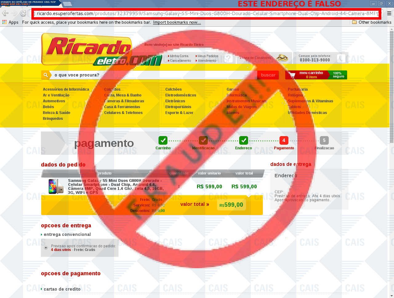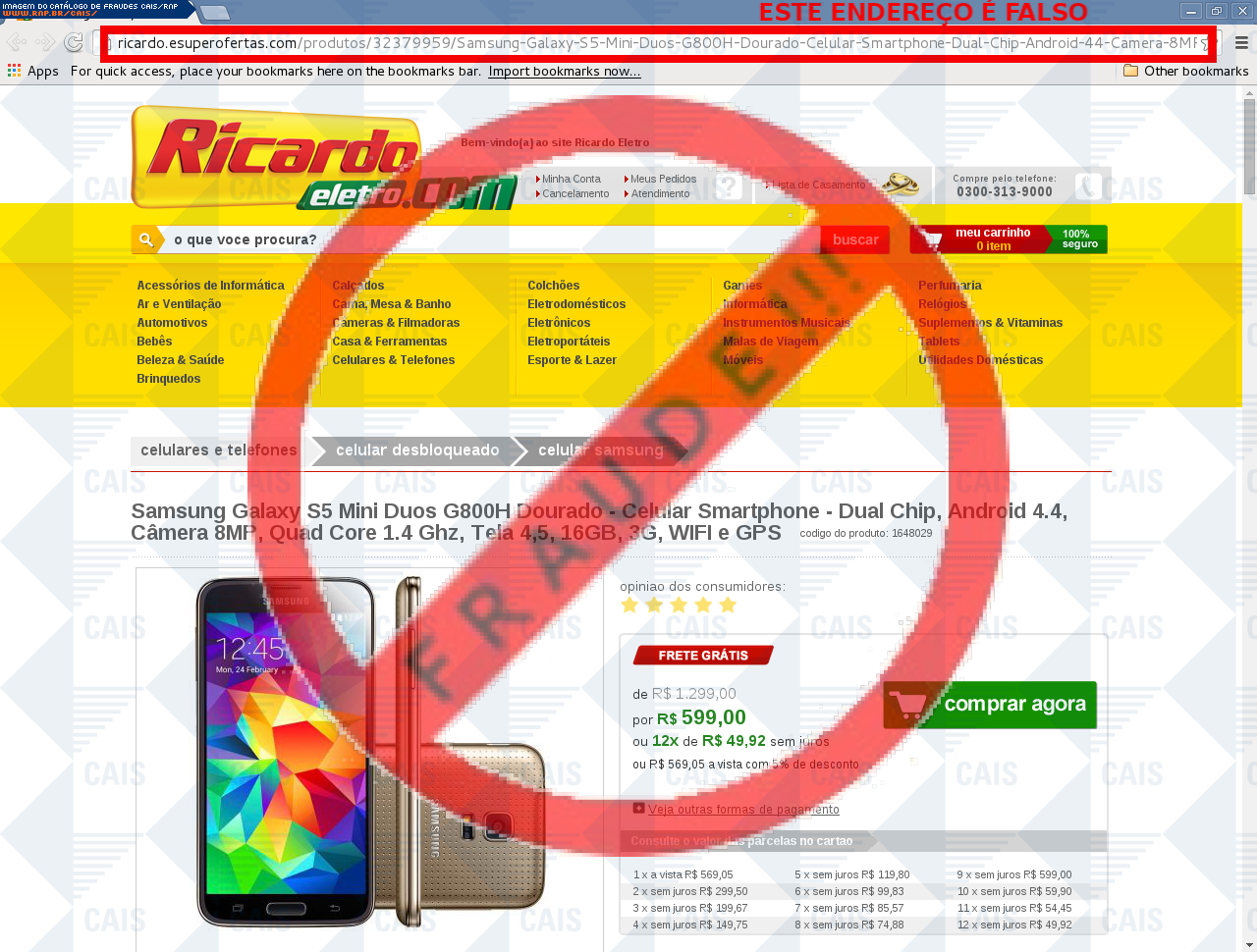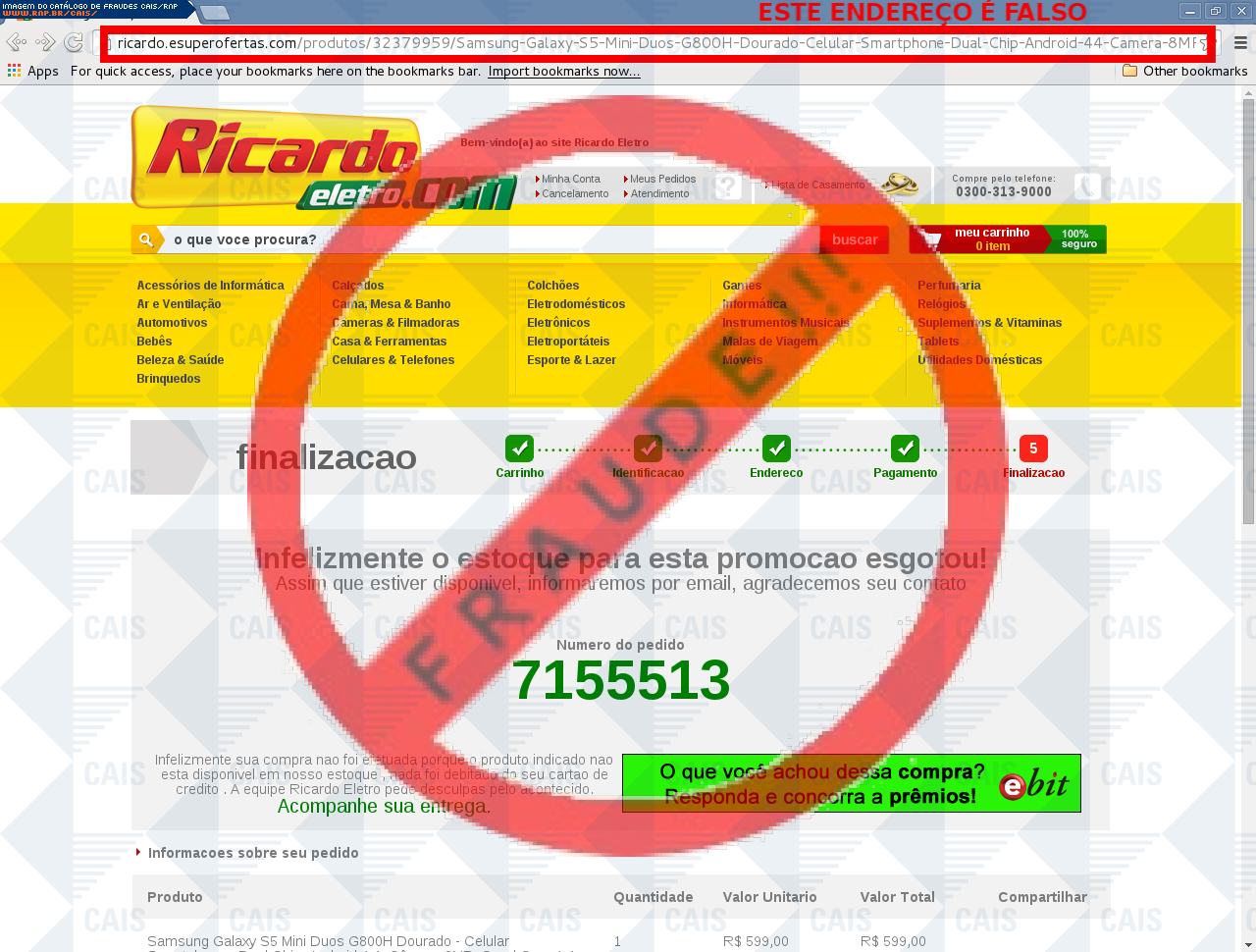 | comentário | A vítima recebe um e-mail informando sobre promoções no site de compra da Ricardo Eletro disponibilizando link de vários produtos em desconto, no entanto a página é falsa destinada a roubar as informações pessoais e do cartão do usuário. | |
