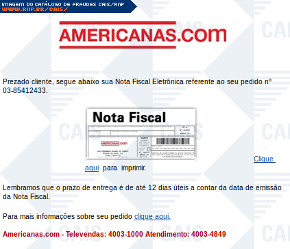 | arquivo malicioso | www.americanas.com | |