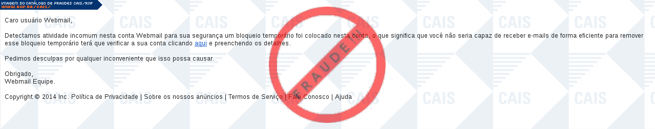 | tipo | FRAUDE - Webmail Bloqueio de Segurança | ID: 33506 |