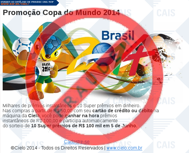 | assunto | Parábens, você foi contemplado no programa Cielo e você na Copa 2014. | |