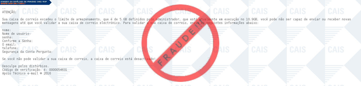 | tipo | FRAUDE - E-mail limite de armazenamento | ID: 48661 |