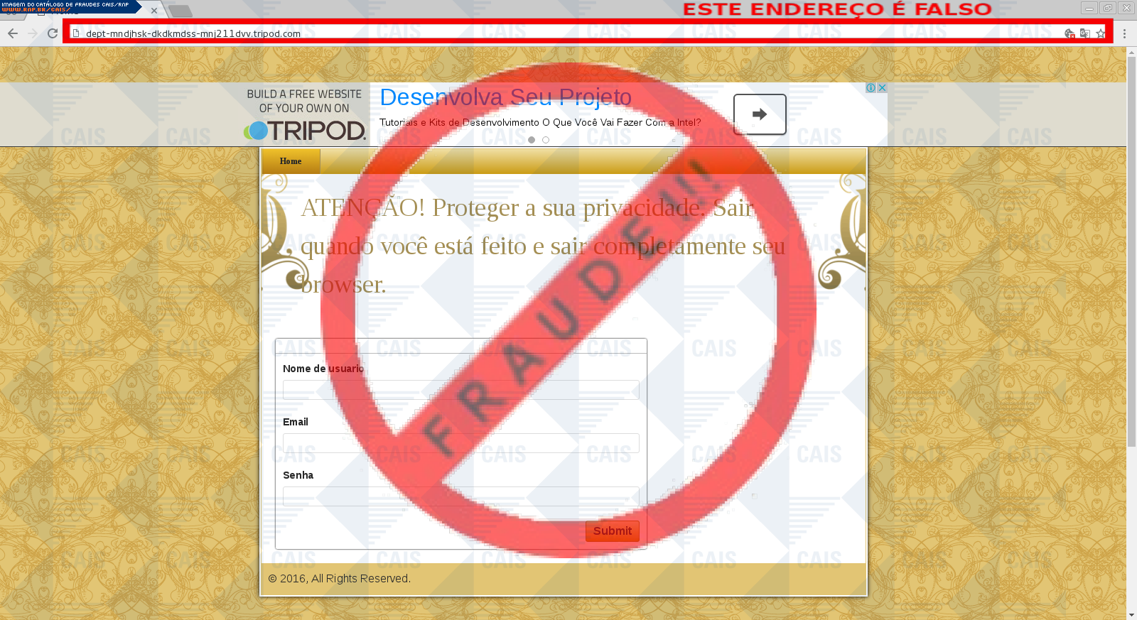 | comentário | O usuário recebe uma mensagem informando que o sistema atualizou sendo necessário realizar um recadastramento para manter a conta ativa, no entanto a página é falsa destinada a roubar as informações do usuário. | |