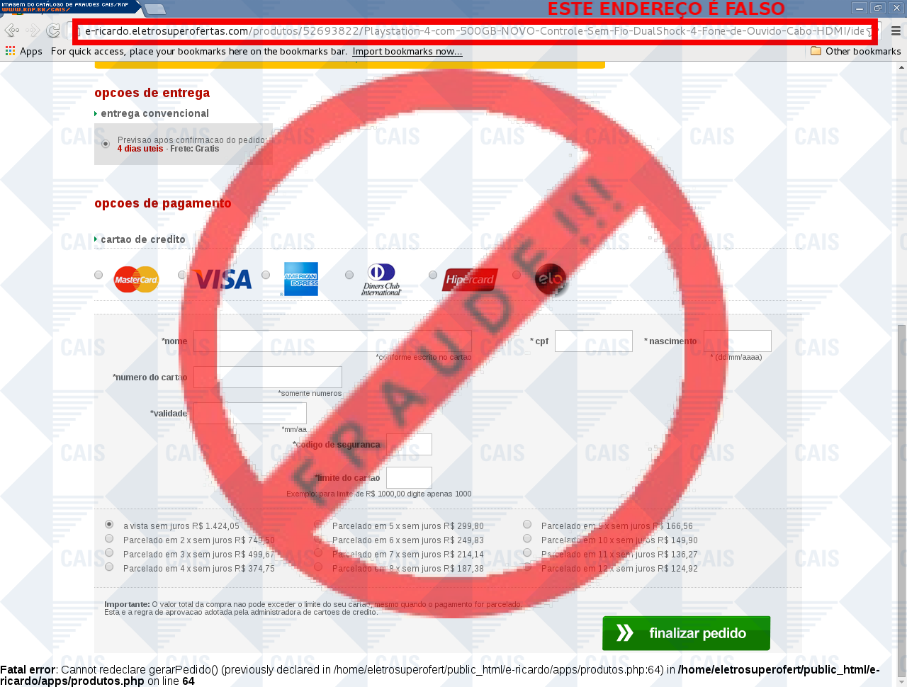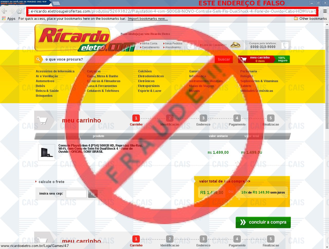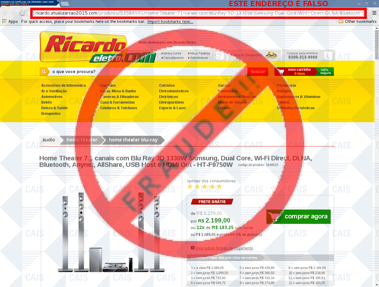 | comentário | A vítima recebe um e-mail informando sobre promoções no site de compra da Ricardo Eletro disponibilizando link de vários produtos em desconto, no entanto a página é falsa destinada a roubar as informações pessoais e do cartão do usuário. | |