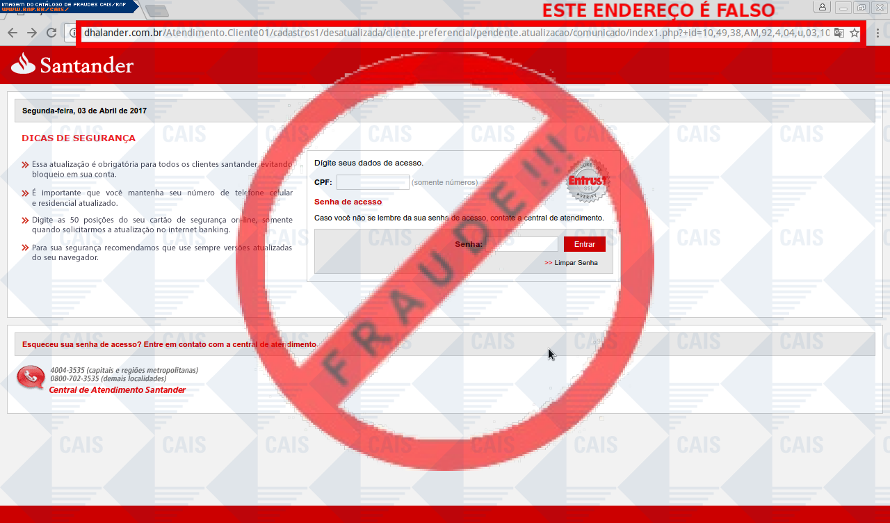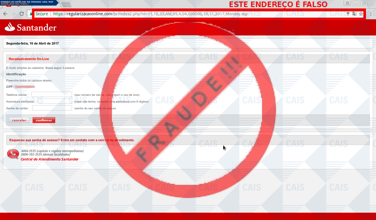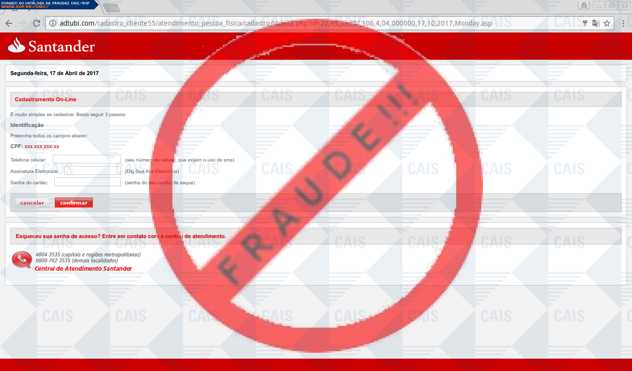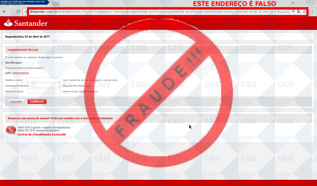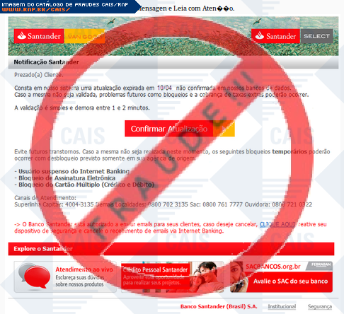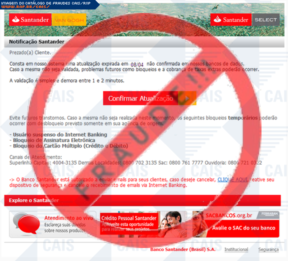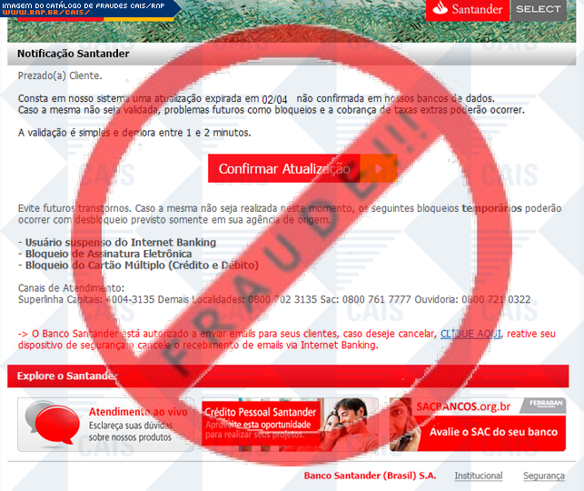 | tipo | FRAUDE - Santander Atualização | ID: 53401 |