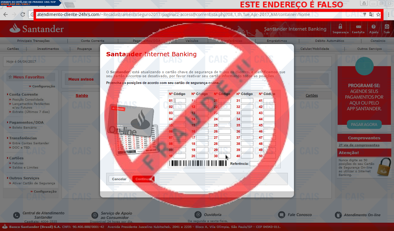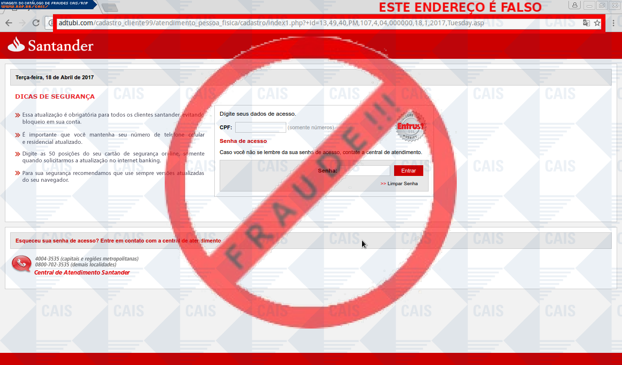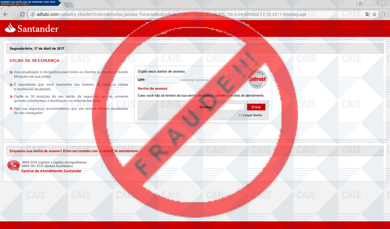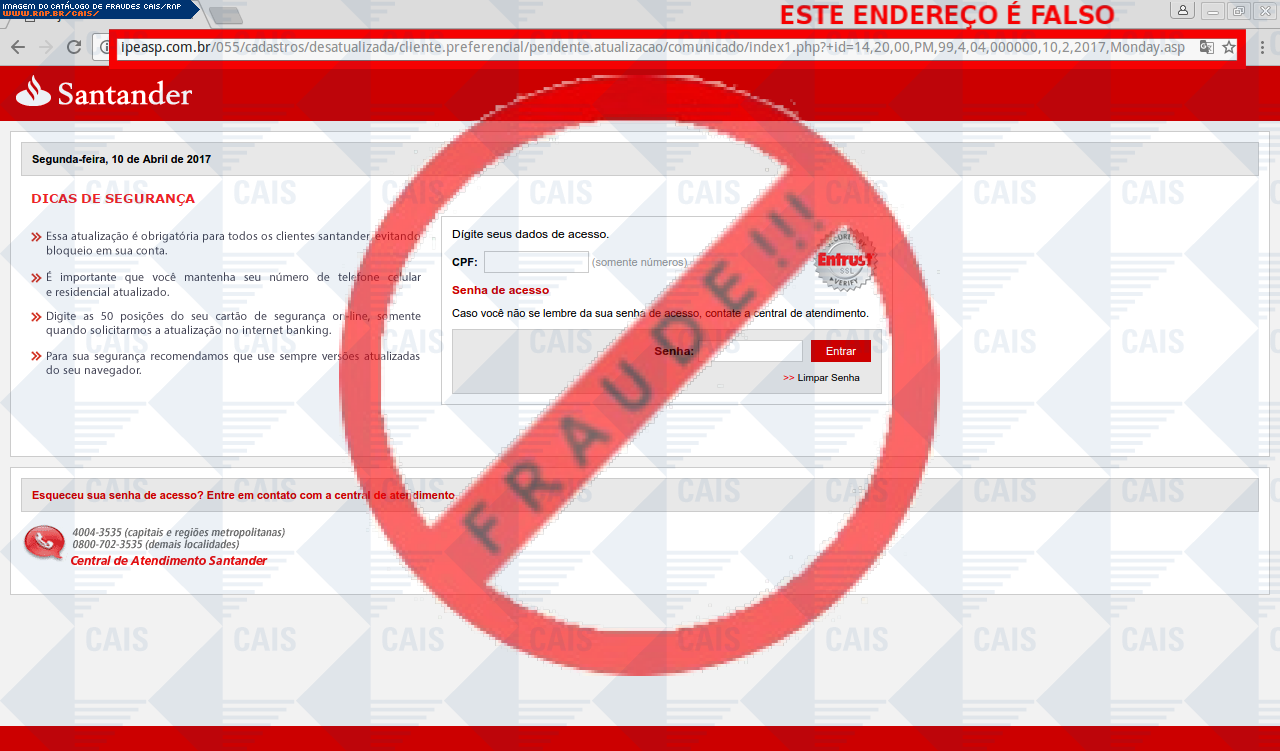 | tipo | FRAUDE - Santander Atualização | ID: 53401 |