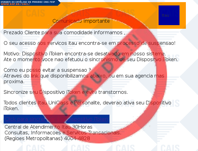| tipo | FRAUDE - Itaú comunicado | ID: 51431 |