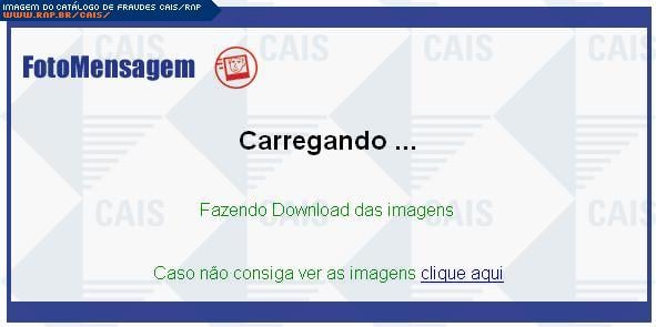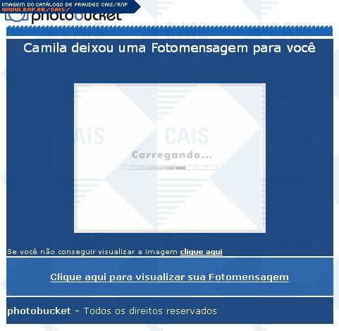 | comentário | Nesta fraude que se passa por uma FotoMensagem existe uma simulação de que as fotos estão sendo "carregadas" e um aviso que caso elas não apareçam deve-se "clicar aqui". O arquivo malicioso atrelado a este link foi identificado por antivirus como sendo Trojan-Spy.Win32.Banker.kpx.... (leia mais) | |