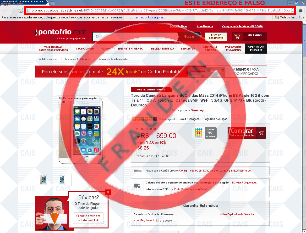 | comentário | A vítima recebe uma mensagem, contendo um link com uma oferta de um produto, mas ao acessar o link, a vítima é direcionada para uma página falsa, que é bem semelhante a página original, Essa página é usada para roubar os dados da vítima. | |