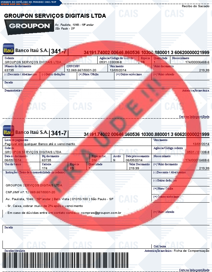 | tipo | FRAUDE - Groupon | ID: 29006 |