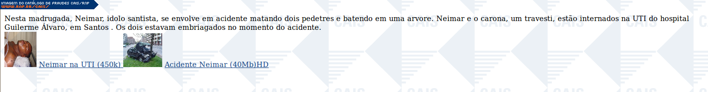| tipo | Acidente com o jogador Neimar | ID: 6916 |