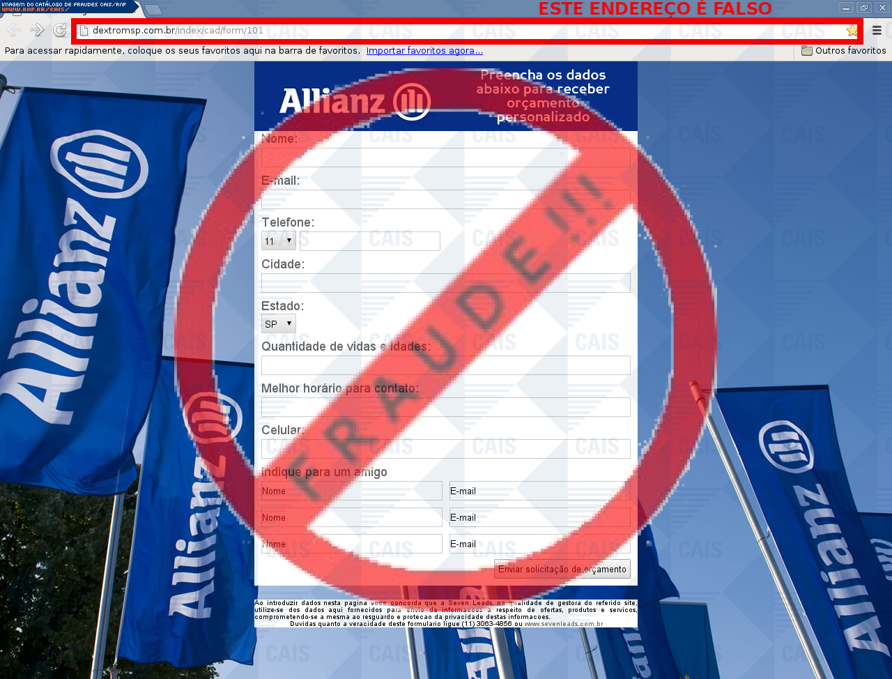 | comentário | A vítima recebe uma mensagem de uma seguradora, que contém um link para fazer um orçamento, mas ao clicar no link, a vítima é direcionada para uma página falsa. | |
