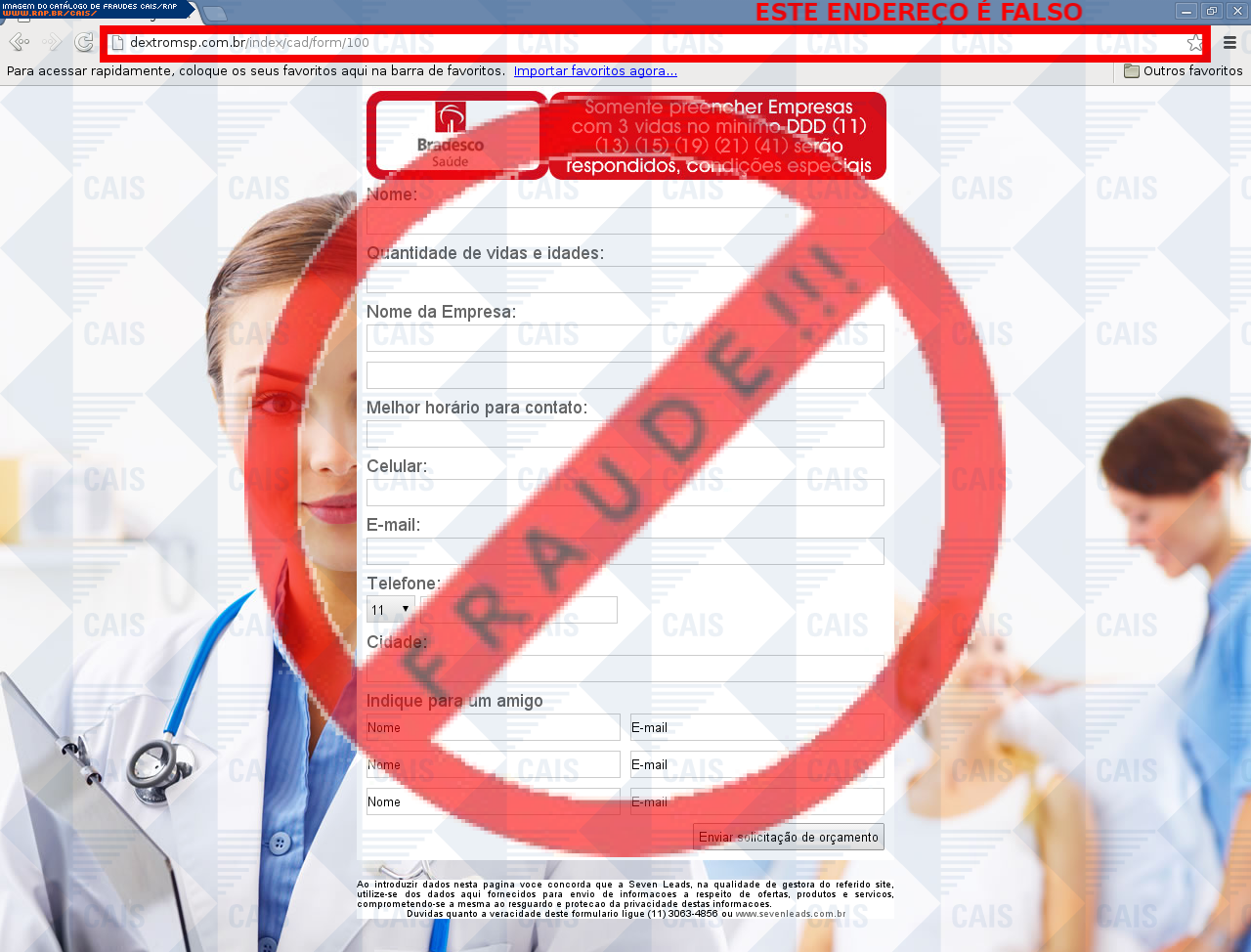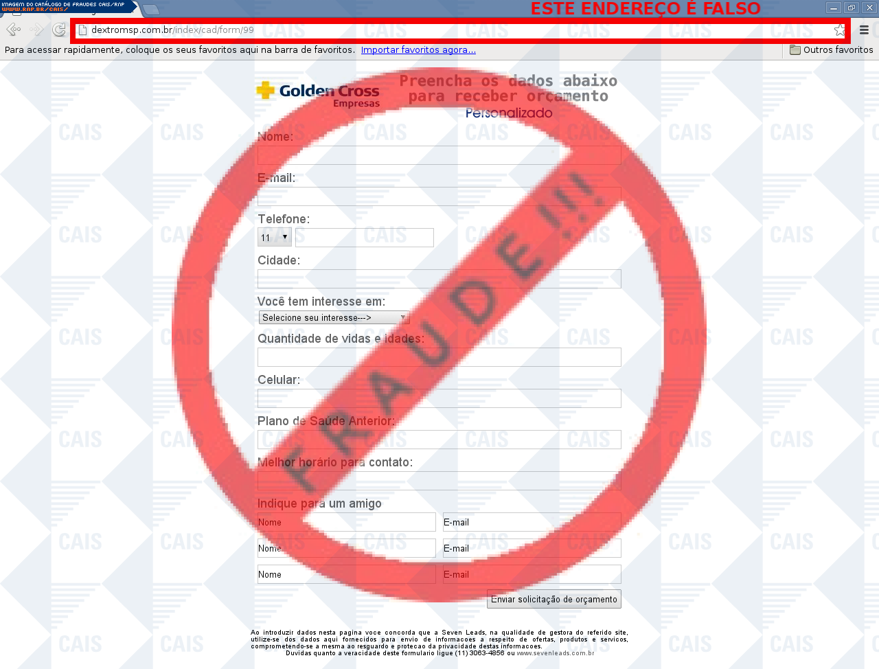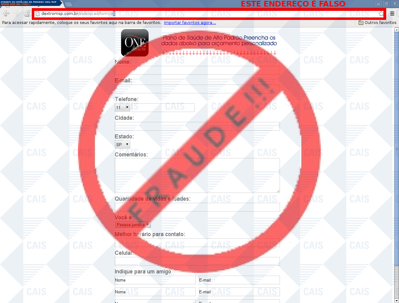 | comentário | A vítima recebe uma mensagem, contendo um link para fazer um orçamento do plano de saúde, mas ao clicar no link, a vítima é direcionada para uma página falsa. | |