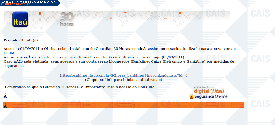 | assunto | Itau Bankline - Atualizacao de seu dispositivo Guardiao 30 horas | |
