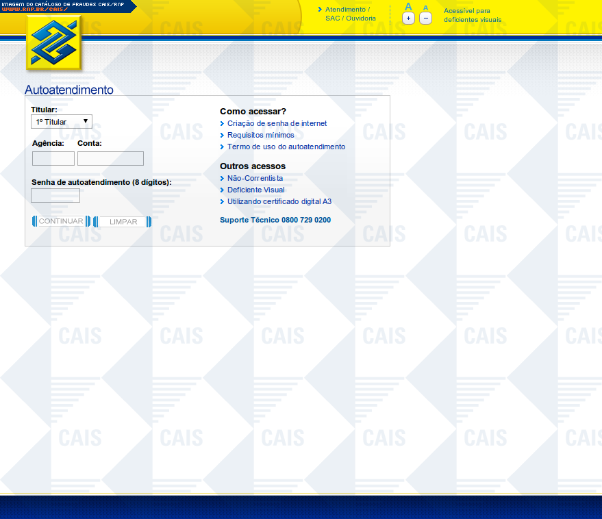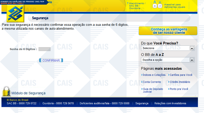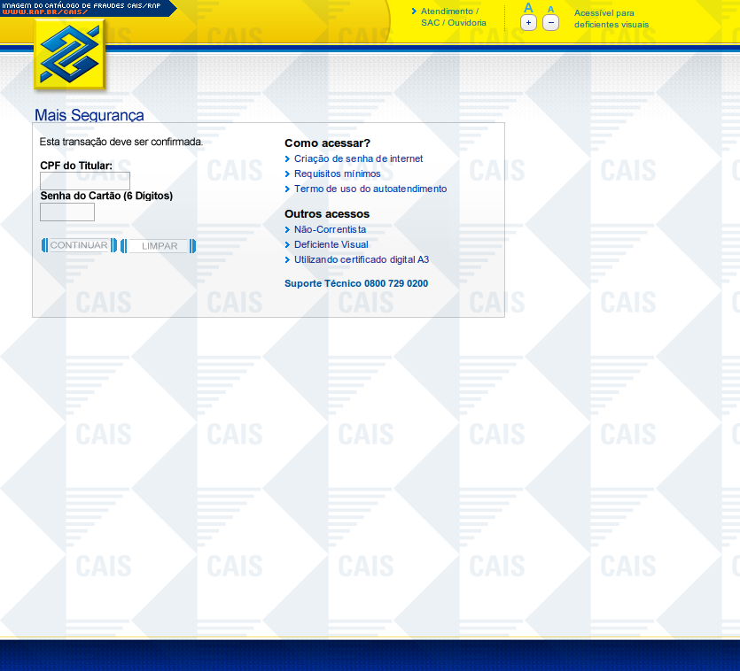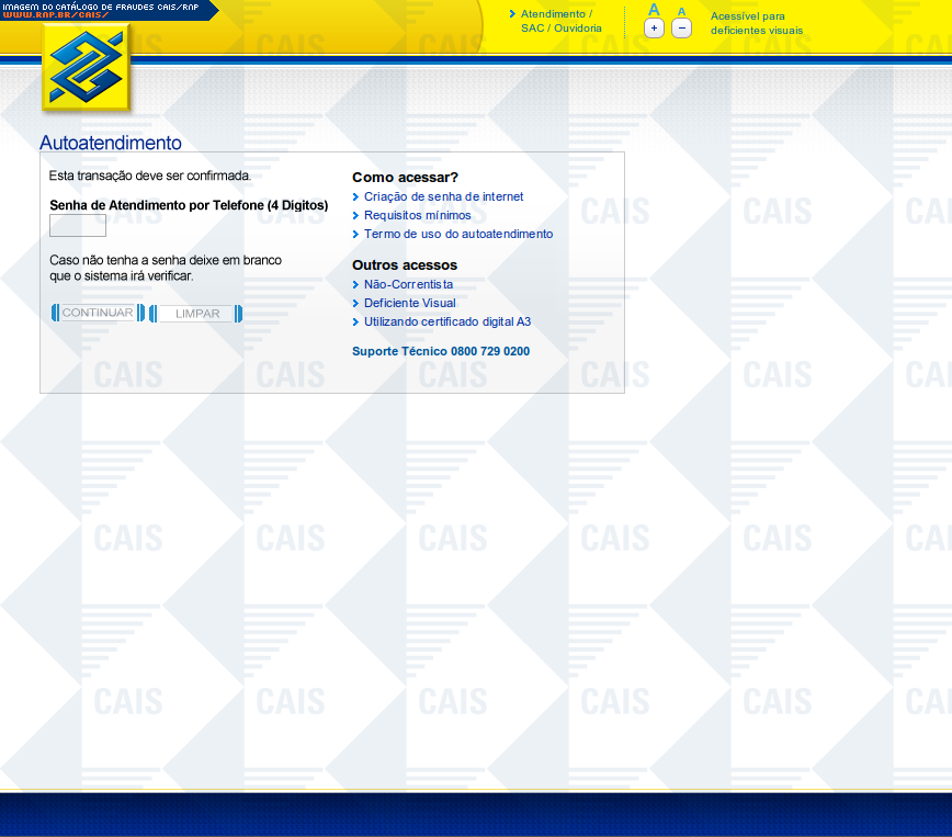 | tipo | Recadastramento de dados Banco do Brasil | ID: 12266 |