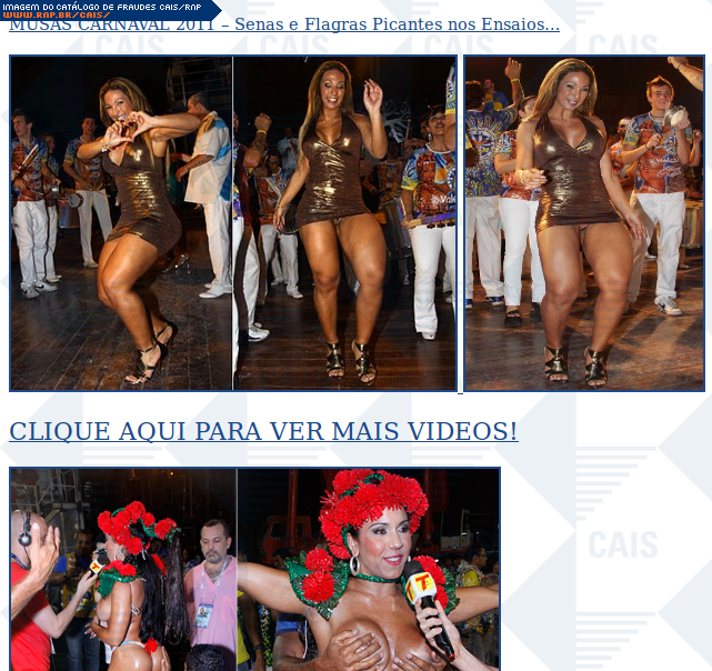 | comentário | A mensagem contém links para vídeos e fotos das musas do carnaval 2011. O conteúdo malicioso não estava disponível no momento da análise. | |